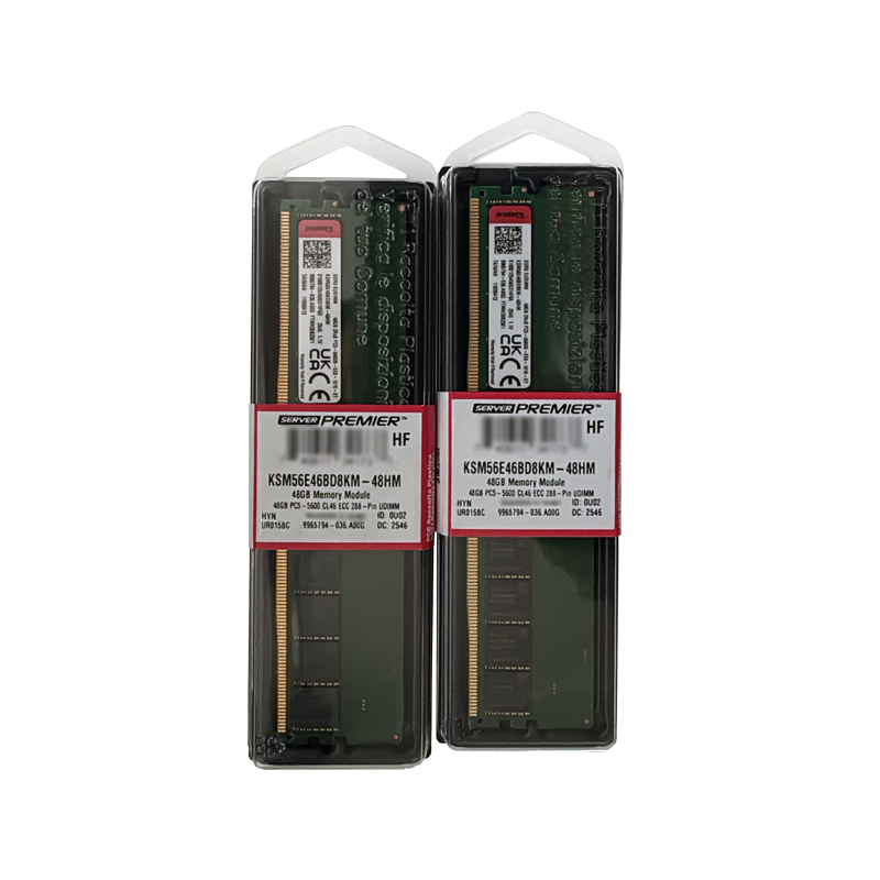 Kingston KSM56E46BD8KM-48HM 48GB PC5-44800 DDR5 5600MHz ECC Unbuffered CL46 288-Pin DIMM 1.1V Dual Rank x8 Memory Module