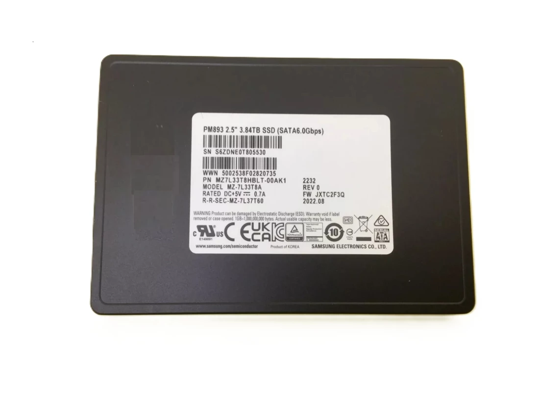 Samsung MZ7L33T8HBLT-00AK1 PM893 Series 3.84TB SATA 6Gb/s Read Intensive SFF 2.5-Inch Data Center Internal Solid State Drive