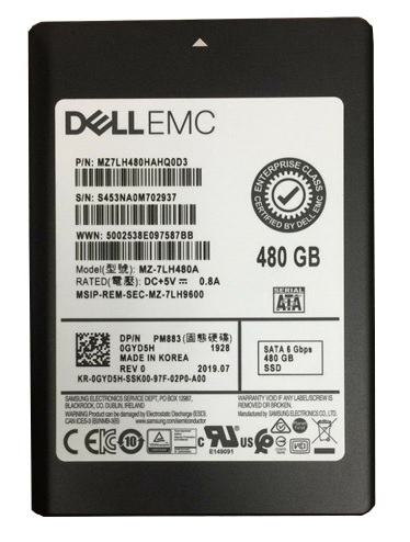Samsung MZ7LH480HAHQ0D3 Pm883 Series 480GB Triple-Level Cell SATA 6Gb/s Read Intensive 2.5-Inch Solid State Drive Dell Oem