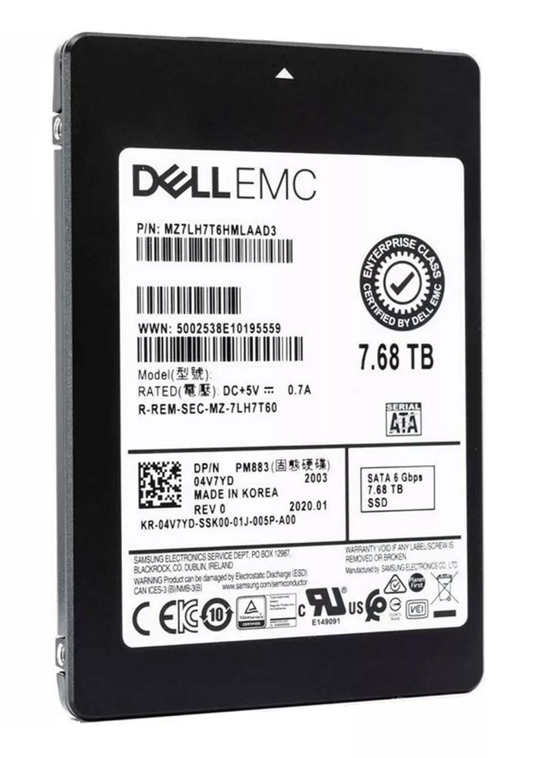 Samsung MZ7LH7T6HMLAAD3 PM883 7.68TB Triple Level Cell SATA 6Gb/s 2.5-Inch SFF Solid State Drive Dell Oem