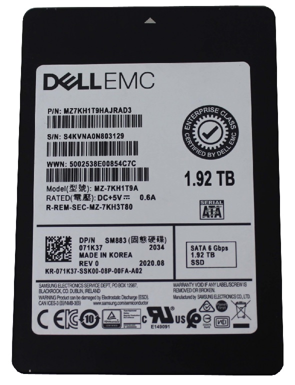 Samsung MZ7KH1T9HAJRAD3 SM883 Series 1.92TB Multi-Level Cell SATA 6Gb/s Mixed Use 2.5-Inch Enterprise Solid State Drive Dell Oem
