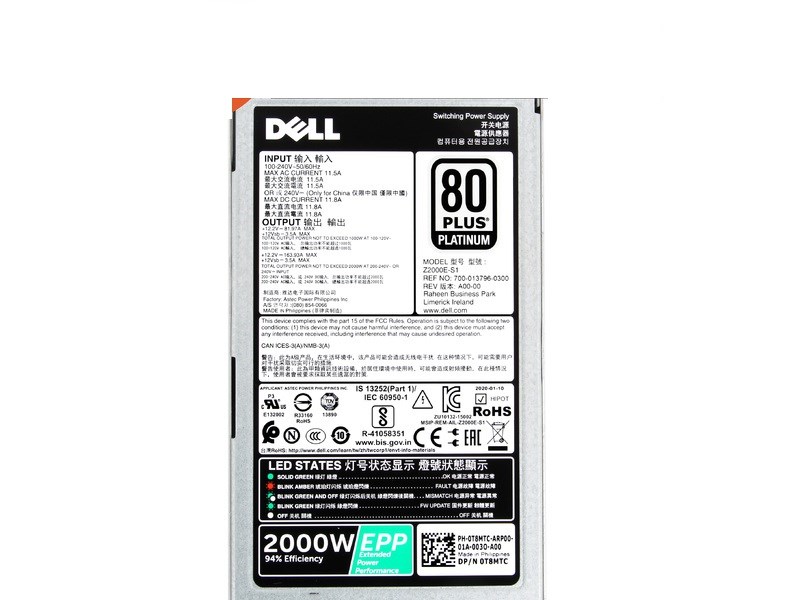 DELL T8MTC 2000 Watt Power Supply For Poweredge R640, R740, R740xd, T640, Fx2.